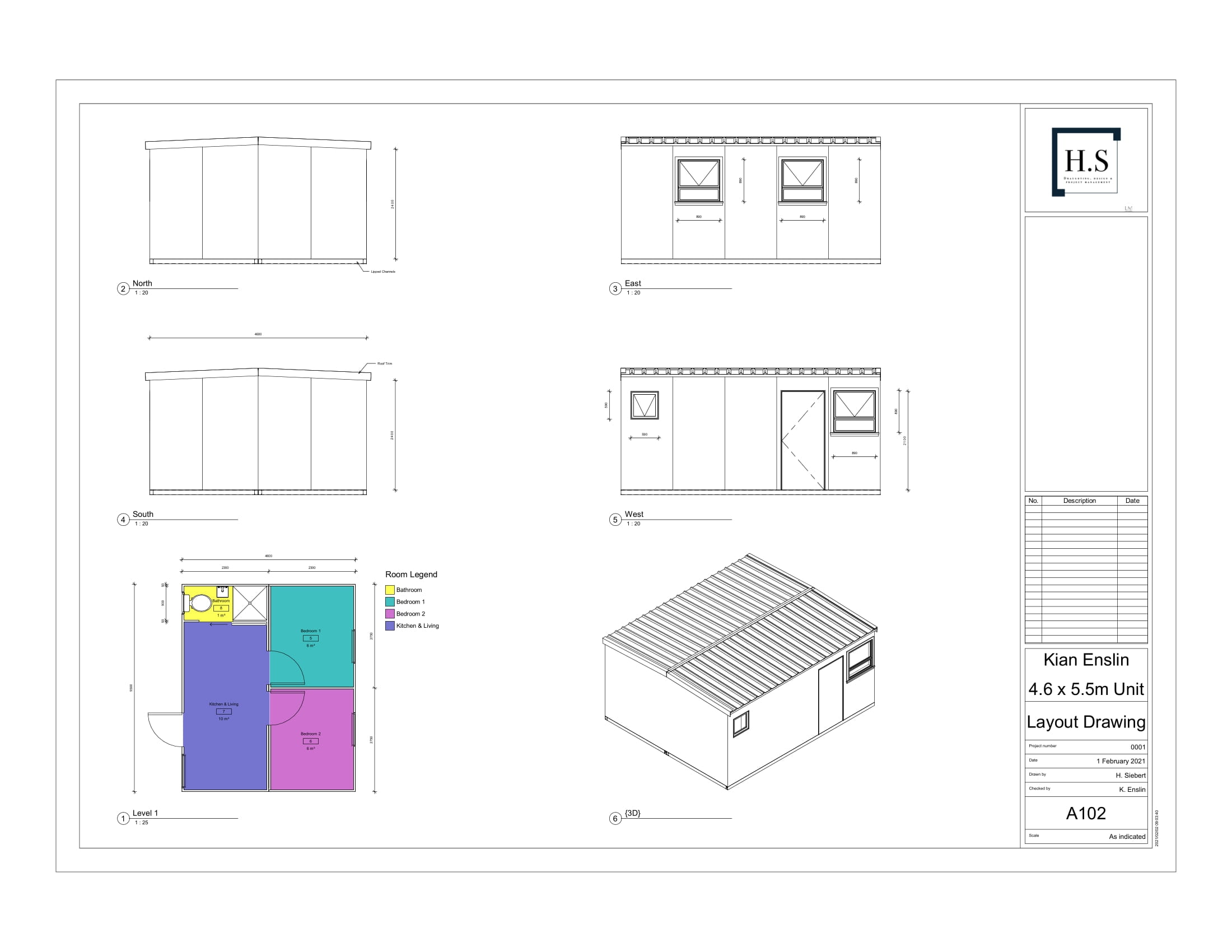 4.6 x 5.5m Double Unit off center windows
